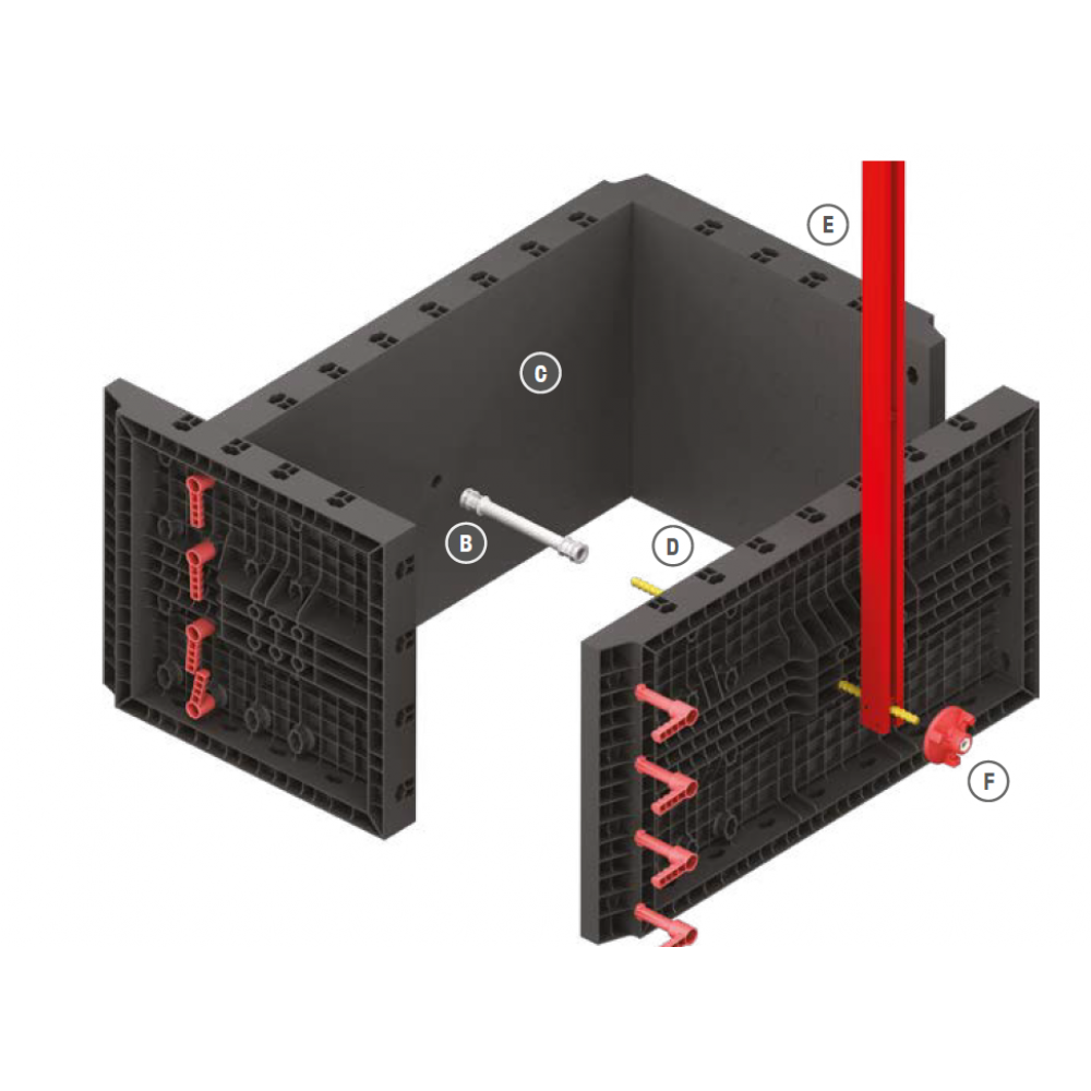 - низька вартість панелей за рахунок використання доступного технологічного матеріалу поліпропілену.Опалубка з ABS пластику (акрилонітрилбутадієнстирол ABS) швидко окупається за рахунок багаторазового використання.